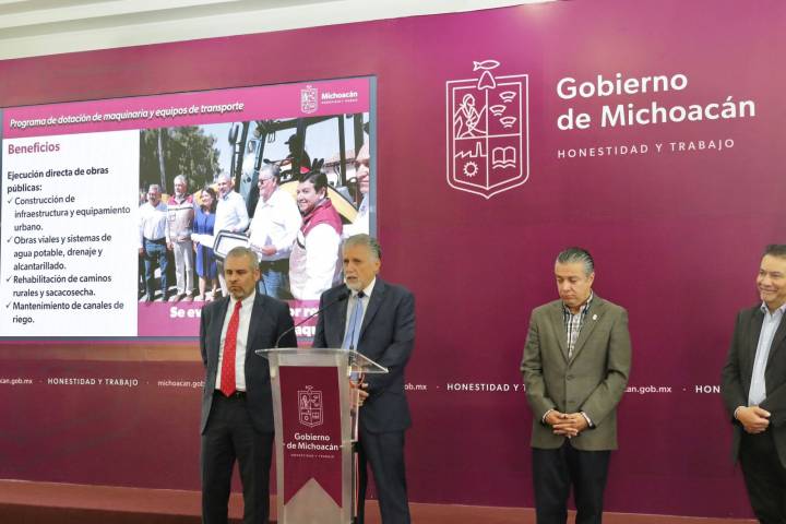NOTICIAS 07/12/2022Asumirá Gobierno de Michoacán 100% costo de maquinaria otorgada a 78 municipiosCon la finalidad de apoyar a los municipios michoacanos, el gobernador Alfredo Ramírez Bedolla, informó que el Gobierno cubrirá el costo total de la maquinaria que se otorgó dentro del Programa de Dotación de Maquinaria y Equipos de Transporte, con una inversión de 317 millones de pesos.