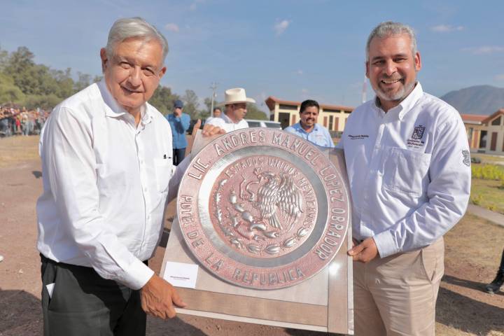 NOTICIAS 18/11/2022Bedolla y AMLO inauguran Universidad para el Bienestar en PajacuaránEl gobernador Alfredo Ramírez Bedolla y el presidente de la República, Andrés Manuel López Obrador, inauguraron la Universidad para el Bienestar "Benito Juárez García" con sede en Pajacuarán.