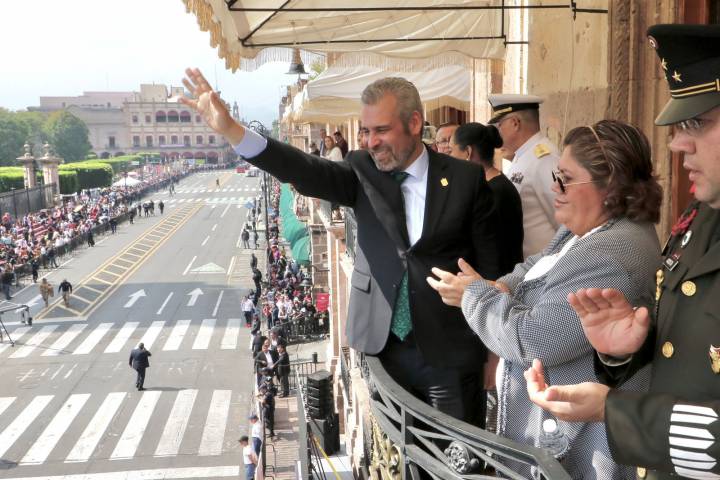 NOTICIAS 20/11/2022Se desarrolla con éxito desfile cívico deportivo del 112 aniversario de la Revolución MexicanaCon la presencia del gobernador Alfredo Ramírez Bedolla y de la presidenta honoraria del DIF estatal, Grisel Tello Pimentel, más de 3 mil 400 personas participaron en el desfile cívico deportivo por el 112 aniversario del inicio de la Revolución Mexicana, en la capital michoacana.