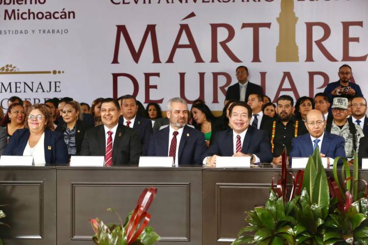 NOTICIAS 21/10/2022Asiste Bedolla al 157 aniversario luctuoso de los Mártires de UruapanEl gobernador Alfredo Ramírez Bedolla, asistió al acto conmemorativo del 157 aniversario luctuoso de los Mártires de Uruapan donde el presidente del Comité Ejecutivo Nacional de Morena, Mario Delgado Carrillo, manifestó su respaldo para que más de 100 mil trabajadores del sector aguacatero accedan a la seguridad social.