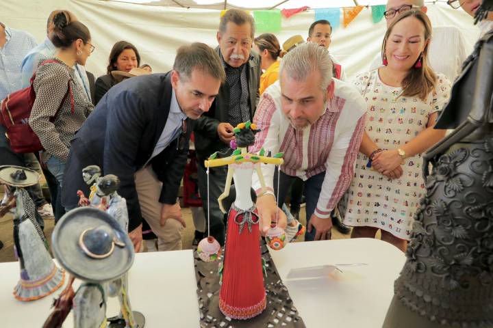 Ejemplo de ello, dijo, es la marca de la Catrina y el capulineado de Capula, dijo el embajador durante la visita que realizó a la capital michoacana y a la Feria Nacional Artesanal y Cultural de la Catr... Ver más...