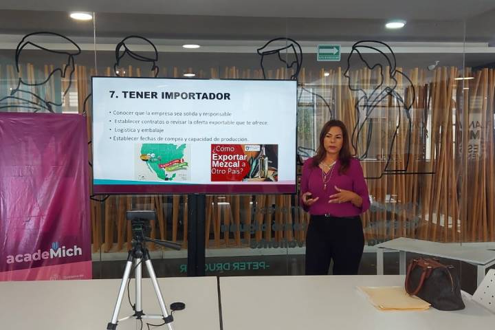 Al exponer la charla "Comercialización y exportación de mezcal por mujeres michoacanas", como parte de... Ver más...