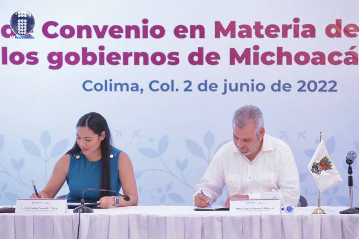 NOTICIAS 02/06/2022Colima y Michoacán firman acuerdo por la seguridad y desarrollo económico de la regiónLa gobernadora de Colima, Indira Vizcaíno Silva y su homólogo de Michoacán, Alfredo Ramírez Bedolla, firmaron este jueves en el Centro de Convenciones del Complejo Administrativo de Colima el convenio de colaboración en materia de seguridad y desarrollo económico, para consolidar en el Pacífico mexicano a los puertos de Manzanillo y Lázaro Cárdenas como puntos estratégicos para el comercio nacional e internacional.