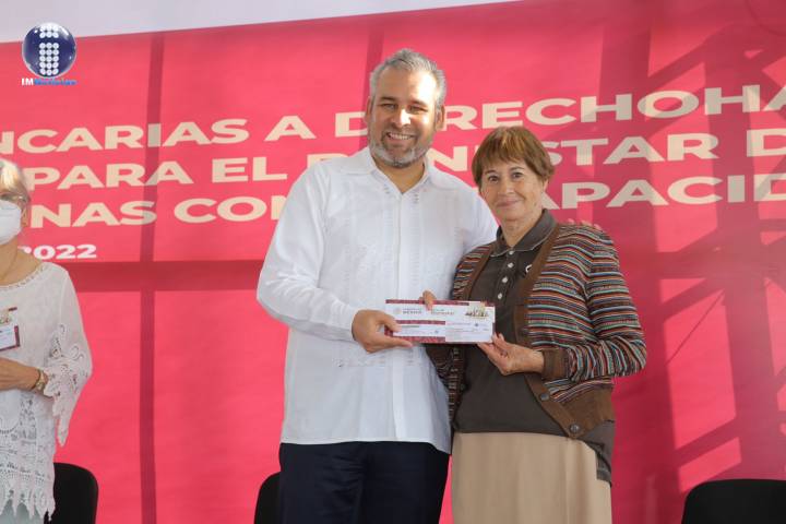 NOTICIAS 21/05/2022Bedolla entrega tarjetas del Gobierno de México para pensión a adultos mayoresEl gobernador Alfredo Ramírez Bedolla informó que en la entidad, 1 millón 100 mil michoacanas y michoacanos reciben apoyos a través de los programas sociales de Bienestar, y de esa cantidad, cerca de 400 mil son adultos mayores de 65 años y más, beneficiados con pensiones bimestrales de 3 mil 850 pesos.