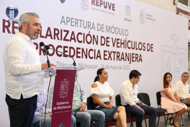 NOTICIAS 15/05/2022Recaudación por regularización de vehículos extranjeros será para pavimentación: Bedolla El gobernador Alfredo Ramírez Bedolla inauguró el módulo de regularización de vehículos de procedencia extranjera en Zitácuaro, con lo que se facilitará el trámite para automóviles con estas características en el Oriente de la entidad e incluso del Estado de México.