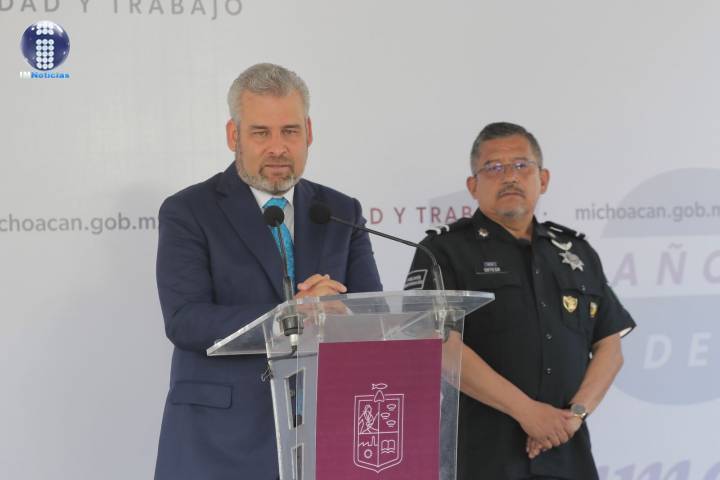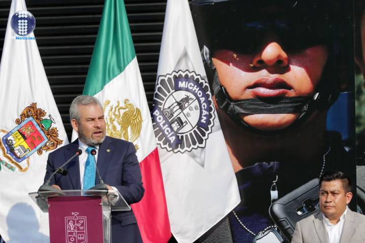En su discurso, el mandatario hizo un reconocimiento a los elementos de la PolicÃa Michoacán, por su ... Ver más...