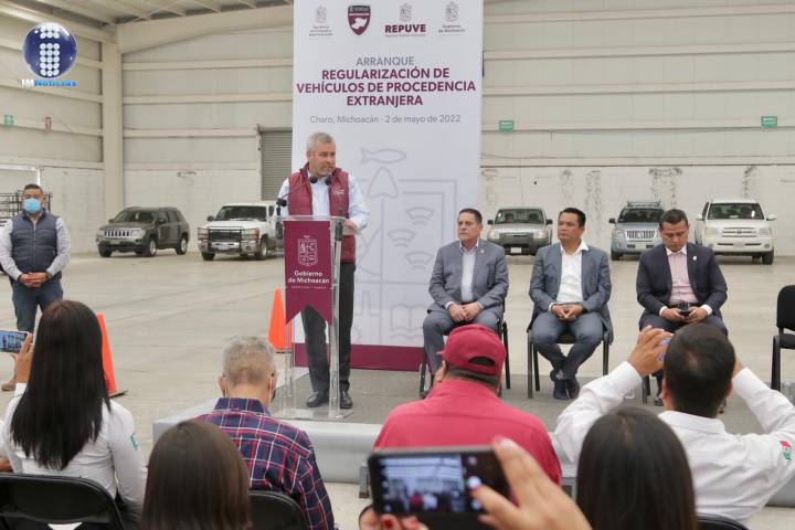 NOTICIAS 02/05/2022Arranca Bedolla regularización de vehÃculos de procedencia extranjera en Michoacán El gobernador Alfredo RamÃrez Bedolla encabezó el arranque del programa de regularización de vehÃculos de procedencia extranjera en Michoacán, luego de ponerse en operación el módulo, habilitado en el Recinto Ferial, para realizar dicho trámite.