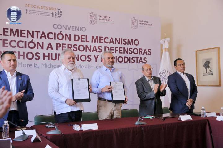 NOTICIAS 26/04/2022Gobiernos de México y Michoacán fortalecen protección a periodistas y defensores de derechos humanosEl gobernador Alfredo Ramírez Bedolla y el subsecretario de Derechos Humanos, Población y Migración de la Segob, Alejandro Encinas Rodríguez firmaron convenio para la implementación del mecanismo federal de protección a personas defensoras de derechos humanos y periodistas. Con ello, se ratifica el compromiso para garantizar los derechos a la libre expresión y el activismo.