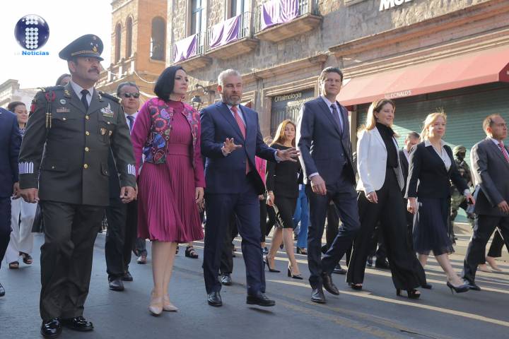 El gobernador Alfredo Ramírez Bedolla, la secretaria de Seguridad y Protección Ciudadana, Rosa Icela Rodríguez Velázquez; el subsecretario de Empleo ... Ver más...