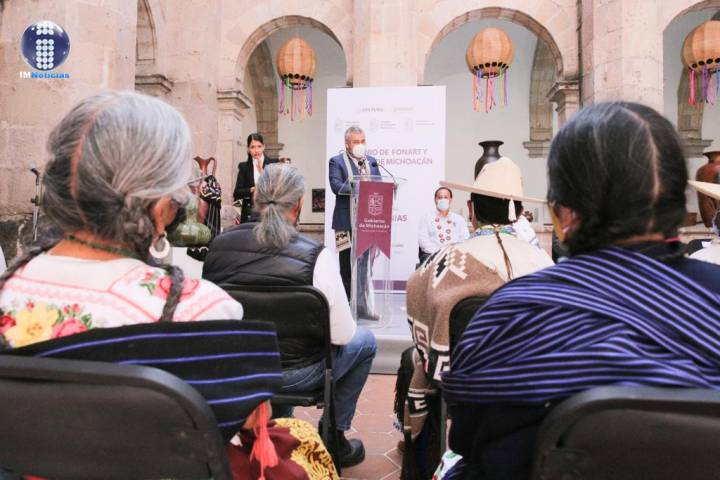 NOTICIAS 02/02/2022Celebra Bedolla el 50 aniversario de Casa de las ArtesaníasEl gobernador Alfredo Ramírez Bedolla y la titular del Fondo Nacional para el Fomento de las Artesanías (Fonart), Emma Yanes Rizo, firmaron convenio de coordinación para fortalecer y promover la riqueza cultural de Michoacán a través de las y los artesanos.