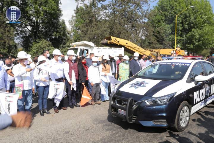 La secretaria Gladyz Butanda Macías, el director de Gestión de Suelo de la Sedum, Mario Vallejo y el presidente municipal Humberto González Villagómez, r... Ver más...