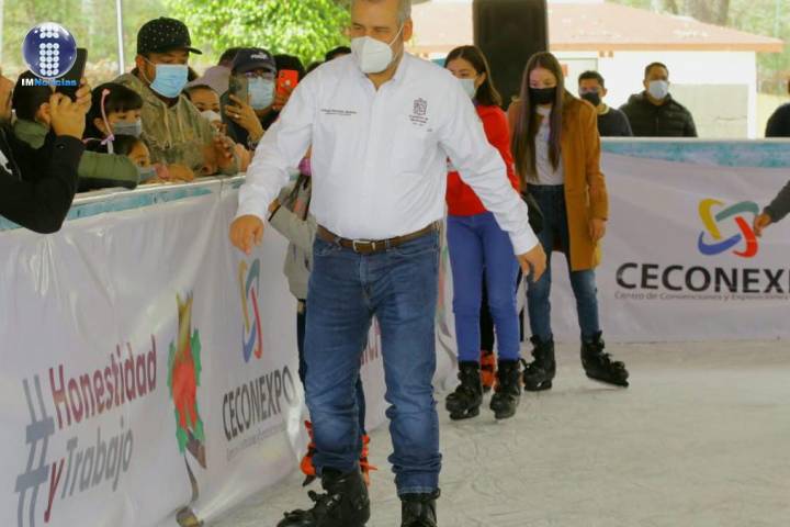 Esta mañana, el mandatario ingreso a la pista y desde ahí, invitó a las y los michoacanos a visitar este atractivo que forma parte de las actividades navideñas que impulsa el Gobierno de Michoacán.