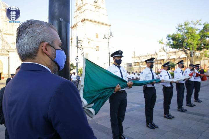 NOTICIAS 20/11/2021Encabeza Gobernador Alfredo Ramírez Bedolla izamiento de BanderaCon motivo del CXI aniversario del inicio de la Revolución Mexicana, el gobernador Alfredo Ramírez Bedolla, encabezó el acto de izamiento de la Bandera Nacional, en la Plaza Melchor Ocampo.