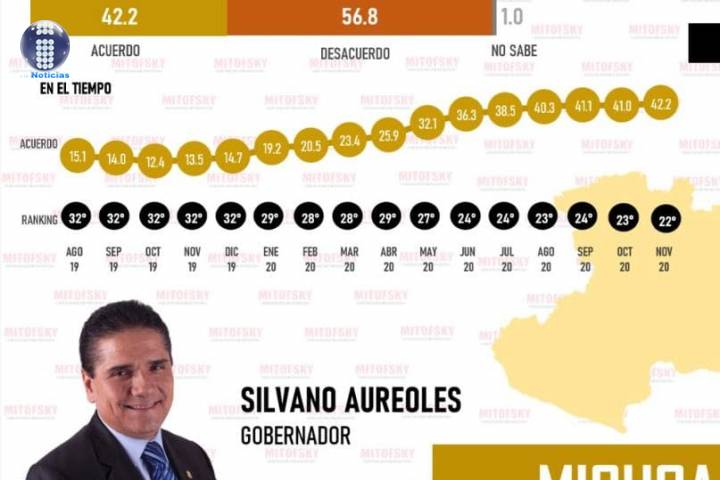 El reporte indica que mientras que en marzo el mandatario michoacano tenÃa 23.4 puntos en para el mes de noviembre alcanzó 42.2 puntos.