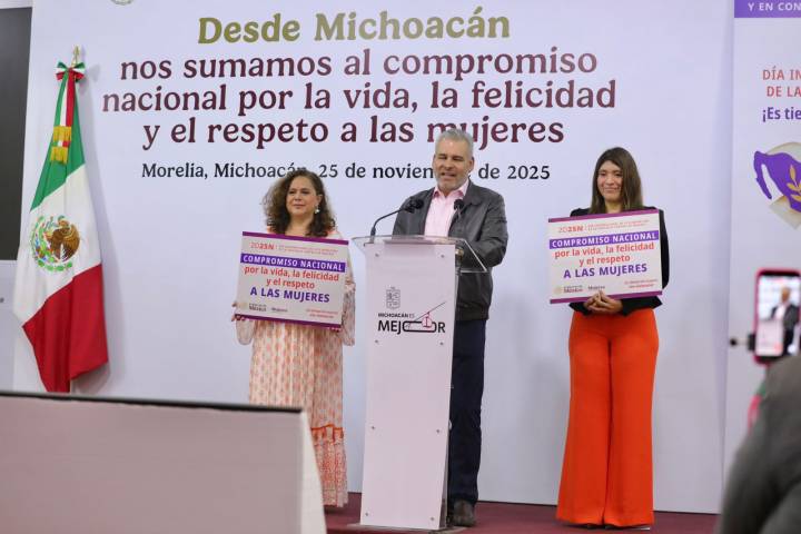 NOTICIAS 25/11/2025Michoacán se suma al compromiso nacional por el respeto a las mujeres: Bedolla Michoacán se suma al compromiso nacional por la vida, la felicidad y el respeto a las mujeres, reafirmó el gobernador Alfredo RamÃrez Bedolla, en el marco del DÃa Internacional de la Eliminación de la Violencia contra las Mujeres.