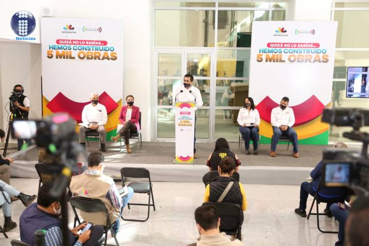 NOTICIAS 18/08/2020Presume Gobierno de Michoacán construcción de 5 mil obras en 5 años Las y los integrantes del Gabinete de Infraestructura del Gobierno de Michoacán dieron a conocer las cinco mil obras que en 5 años ha logrado la administración que encabeza el Gobernador Silvano Aureoles Conejo.