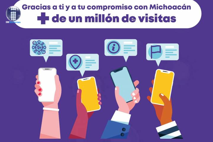 NOTICIAS 10/07/2020Más de un millón 300 mil visitantes suma el micrositio sobre COVID-19 El micrositio michoacancoronavirus.com, del Gobierno del Estado, en el que se encuentra toda la información validada por la Secretaría de Salud de Michoacán sobre el COVID-19, así como las medidas que ha tomada la administración estatal para hacerle frente, suma ya más de un millón 300 mil visitantes.