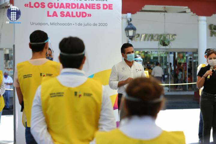 NOTICIAS 01/07/2020Guardianes de la Salud, fundamentales para combatir COVID-19 en Michoacán: Gobernador Las mujeres y hombres que se han convertido en los Guardianes de la Salud, serán el componente fundamental de todas las medidas sanitarias que se han tomado en Michoacán para hacer frente al COVID-19, afirmó el Gobernador Silvano Aureoles Conejo, al dar arranque a las brigadas de los Guardianes de la Salud, en Huetamo.