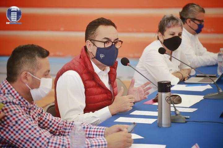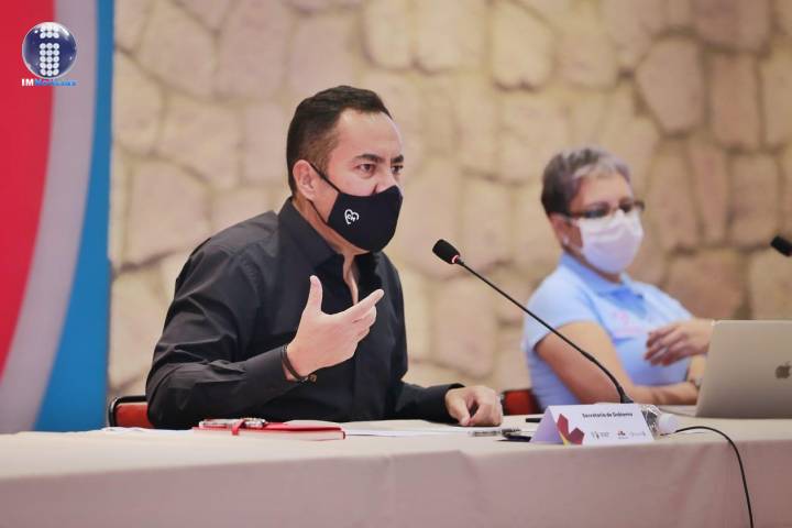 NOTICIAS 23/06/2020Participación de municipios, fundamental para contener el COVID-19 A reforzar las medidas de distanciamiento social en los municipios con bandera amarilla, ya que acumulan el 35 por ciento de contagios y el 40 por ciento de las defunciones por COVID-19, invitó el secretario de Gobierno, Carlos Herrera Tello a las ocho alcaldías con riesgo alto de contagio de COVID-19.