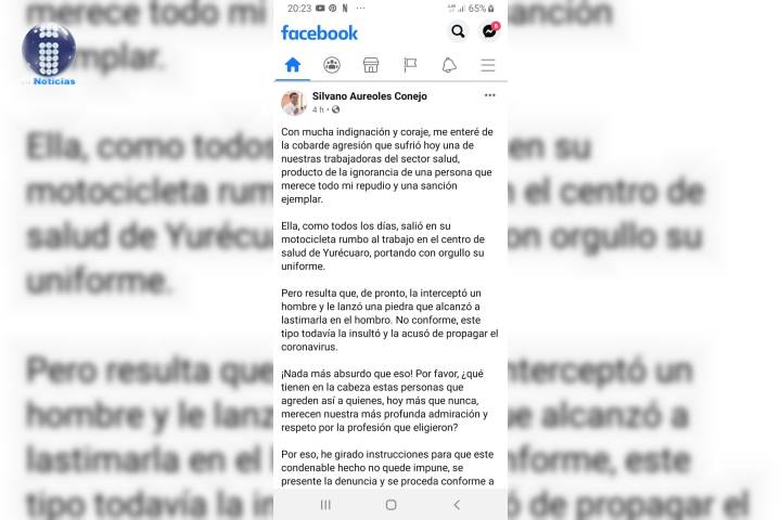 "Con mucha indignación y coraje, me enteré de la cobarde agresión que sufrió hoy una de nuestras trabajadoras del sector salud, producto de la ignorancia de una persona que merece todo mi repudio y una sanción ejempl... Ver más...