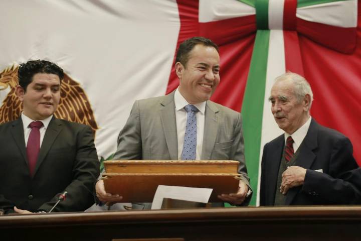 En el Salón de recepciones del Congreso del Estado y ante el presidente de la ... Ver más...
