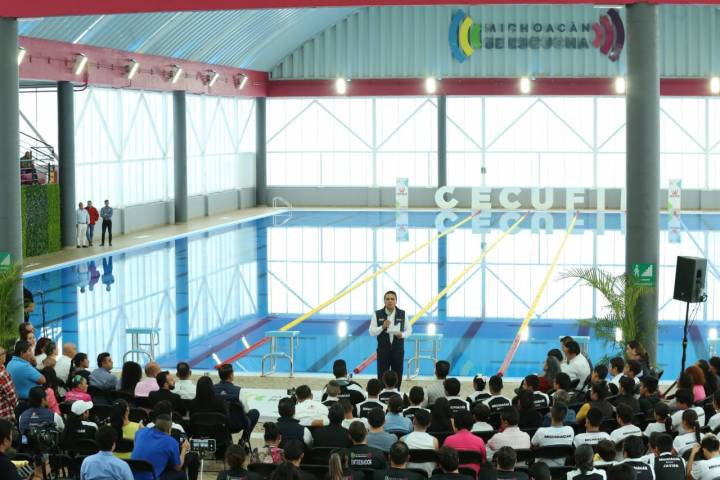 NOTICIAS 26/11/2019Michoacán, a la vanguardia en espacios deportivos con Alberca Olímpica del CDER El impulso al deporte en Michoacán con la cristalización de obras que permitan a atletas desarrollar al máximo su talento, se consolida con la remodelación histórica de la Alberca Olímpica "Aquiles Serdán" del Centro Deportivo Ejército de la Revolución (CDER), inaugurada hoy por el Gobernador Silvano Aureoles Conejo.