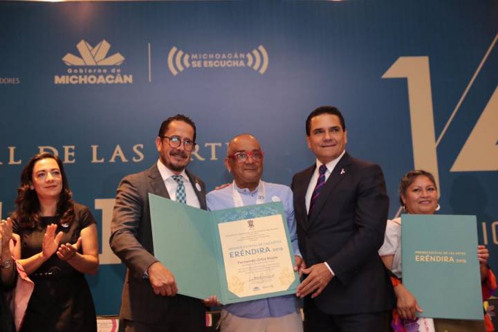NOTICIAS 10/10/2019La mayor riqueza de Michoacán es su gente: Silvano Aureoles Las manos creativas y la capacidad intelectual que reflejan las obras y trayectoria de artistas como María Guadalupe García Ríos, Arturo Estrada Hernández y Fernando Ortiz Rojas, reflejan la mayor riqueza que tiene la gente de Michoacán, destacó el Gobernador Silvano Aureoles Conejo, al encabezar la 15 edición del Premio Estatal de las Artes Eréndira.