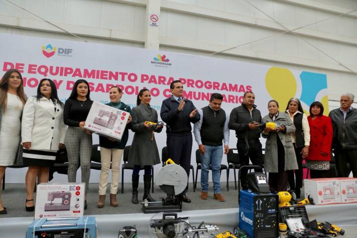 NOTICIAS 29/11/2018Continuaremos gestiones para apoyar a municipios; afirma SilvanoEl compromiso que mantiene el Gobernador Constitucional, Silvano Aureoles Conejo, con las y los michoacanos más desprotegidos sigue vigente; este jueves hizo entrega de equipamiento, requipamiento y proyectos productos a los 113 municipios a través del DIF estatal, para llegar a las familias que más lo requieren.