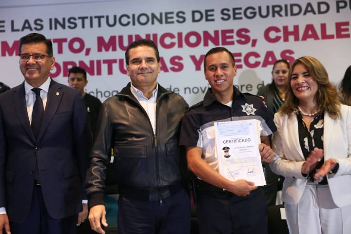Así lo expresó esta tarde en el evento de entrega de armamento, municiones, chalecos balísticos, fornituras y becas, como parte del programa de Fo... Ver más...
