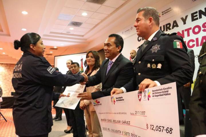 NOTICIAS 21/11/2017Policías capacitados, fundamentales para atención a la inseguridad: Adrián López Al encabezar el acto de clausura del Curso de Formación Inicial para Aspirantes del Instituto Estatal de Estudios Superiores de Seguridad y Profesionalización Policial del Estado (IEESSPP), el secretario de Gobierno, Adrián López Solís destacó la capacitación de los 144 elementos policíacos municipales, que durante más de 900 horas recibieron en las aulas y en campo, toda vez que abona al propósito central de la política pública en m... Ver más...