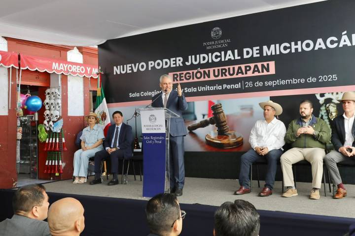 NOTICIAS 26/09/2025Justicia más cerca de la gente; pone Bedolla en marcha salas regionales judiciales en UruapanEl gobernador Alfredo Ramírez Bedolla, acompañado del presidente del Supremo Tribunal de Justicia del Estado, Hugo Alberto Gama Coria, inauguró las primeras salas regionales judiciales de segunda instancia en materia penal, civil, familiar y mercantil, a través de las cuales la población podrá acceder a la justicia de manera pronta e inmediata.