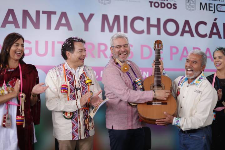 NOTICIAS 30/07/2025Con entrega de guitarras de Paracho a secundarias se reforzará la producción de artesanos: BedollaEn cumplimiento al compromiso que hizo el gobernador Alfredo Ramírez Bedolla y la presidenta Claudia Sheinbaum Pardo para apoyar la producción de guitarras de Paracho, este año se distribuirán 10 mil instrumentos en escuelas secundarias como parte del programa "México canta y Michoacán toca con guitarras de Paracho".
