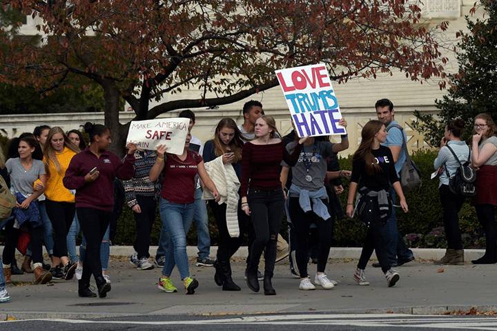 NOTICIAS 15/01/2017Inicia semana de protestas contra TrumpUnas dos mil personas marcharon por calles de Washington para protestar contra la retórica xenófoba y políticas migratorias del presidente electo de Estados Unidos, Donald Trump, así como contra los candidatos de "extrema derecha" nominados para su gabinete. El lema de la movilización fue "Estamos aquí para quedarnos".