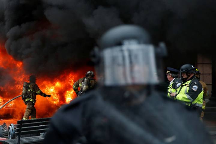 El día comenzó con intentos de bloqueo por parte de varios grupos de manifestantes para que los simpatizantes de Trump no pudieran acceder a los puntos del recorrido del desfile inaugural reservados para el público en el centro de Washington.