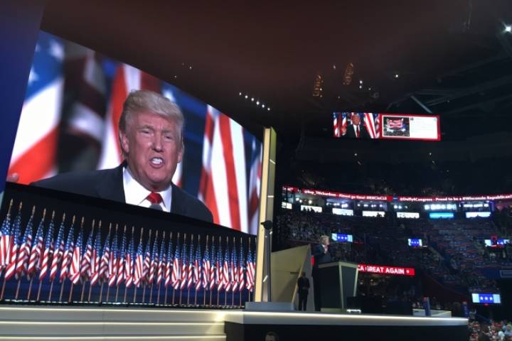 NOTICIAS 21/07/2016Trump asume candidatura y reitera construcción de muroEl republicano Donald Trump reiteró esta noche, en su primer discurso como candidato a la Presidencia de Estados Unidos, que construirá un muro en la frontera con México para detener la inmigración ilegal.