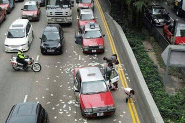 En unos instantes la circulación en la calle de Gloucester, en pleno centro de Hong Kong, se paró cuando los chóferes de taxi, los viandantes y todos los que se dieron cuenta a tiempo, se l... Ver más...