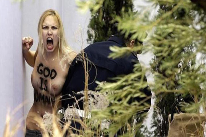 NOTICIAS 25/12/2014Militante de "femen" protesta en el pesebre de la Plaza de San PedroUna militante del grupo de las "femen", que protesta contra la oposición de la iglesia al aborto y la unión libre, exhibió este jueves, día de Navidad, sus senos desnudos en el pesebre instalado en la Plaza San Pedro del Vaticano, según testigos.