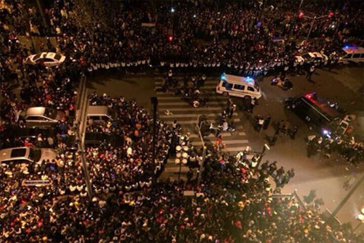 De acuerdo con reportes de la cadena estatal de televisión CCTV, la estampida ocurrió minutos antes de la medianoche local, cuando la multitud celebraba ya el arribo del 2015, aunque por el momento se desconoce el motivo que la propició.