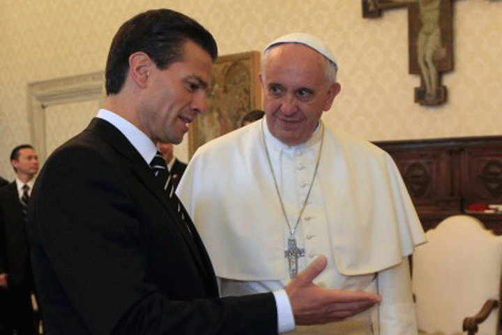 NOTICIAS 07/06/2014Visita Oficial a la Santa SedeDurante mi Visita Oficial a la Santa Sede, me reunà con el Papa Francisco en un ambiente de franca amistad y buen entendimiento, lo que permitió estrechar los vÃnculos entre México y la Santa Sede.