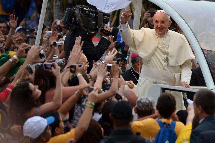 El papa Francisco llegó este lunes a Rio de Janeiro y se paseó en papamóvil semidescubierto por el centro de la ciudad, donde miles de peregrinos de todo el mundo gritaron y lloraron emocionados al darle la bienvenida al primer papa latinoamericano de la historia. El Papa argentino, de 76 años, inició así en Brasil, el país con más católicos del mundo, su primer viaje internacional para presidir la Jornada Mundial de la Juventu...