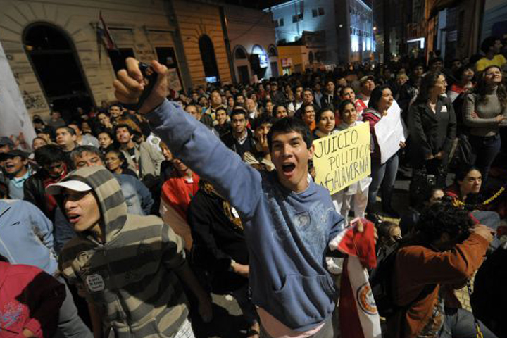 NOTICIAS 26/06/2012Aumenta la tensión, paraguayos apoyan la "resistencia pacífica" de Fernando LugoAumenta la tensión en Paraguay. Tras la destitución del expresidente Fernando Lugo por el Senando el pasado viernes, el temido baño de sangre que muchos presentían en Asunción no se produjo. Los escasos 5 mil manifestantes que se habían congregado bajo la vigilancia de francotiradores en la plaza del Congreso volvieron a sus casas. Pero sus seguidores han regresado a las calles y se han organizado bajo un Frente Nacional para la Defensa de ... Ver más...