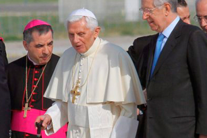 NOTICIAS 23/03/2012Por primera vez, Benedicto XVI utiliza bastón en público antes de partir a MéxicoDurante la ceremonia de despedida desde el aeropuerto de Fiumicino, en Roma y antes de partir hacia tierra azteca, los presentes pudieron observar que Ratzinger utilizó por primera ocasión la ayuda de un bastón para su andar.