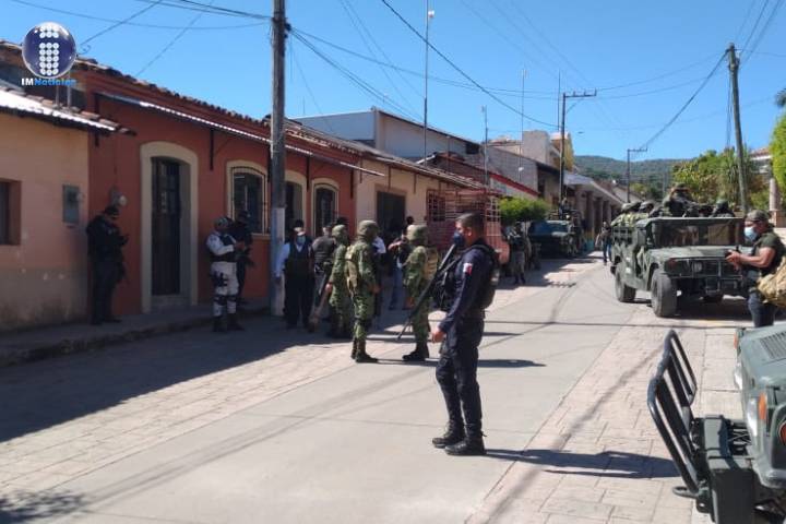 Ante el reporte de supuestos enfrentamientos entre civiles armados en la cabecera de este municipio, el personal de la Secretaría de Seguridad Pública acudió al apoyo de las autoridades municipales en coordinación con el Ejército, la Guardia Nacional (GN) y la Fiscalía General del Estado (FGE), tras lo cual únicamente se hallaron dos domicilios con impactos de bala.