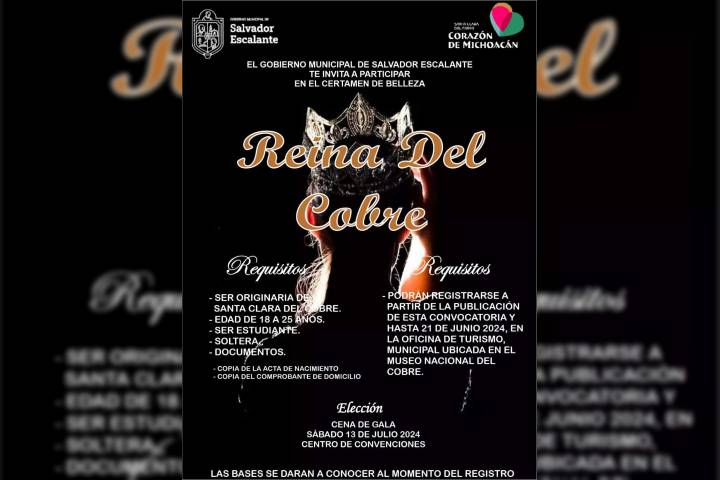 NOTICIAS 19/06/2024Invita Gobierno de Salvador Escalante a participar en el Certamen de Belleza "Reina del Cobre"El Gobierno Municipal de Salvador Escalante se complace en invitar a todas las jóvenes de Santa Clara del Cobre a participar en el prestigioso concurso "Reina del Cobre".