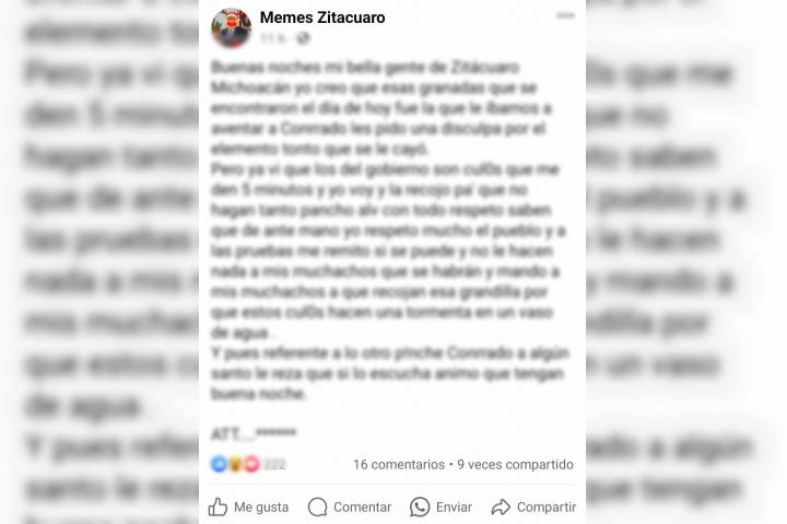 NOTICIAS 09/02/2024En redes sociales delincuentes se asumen responsables por la granada abandonada en Zitácuaro