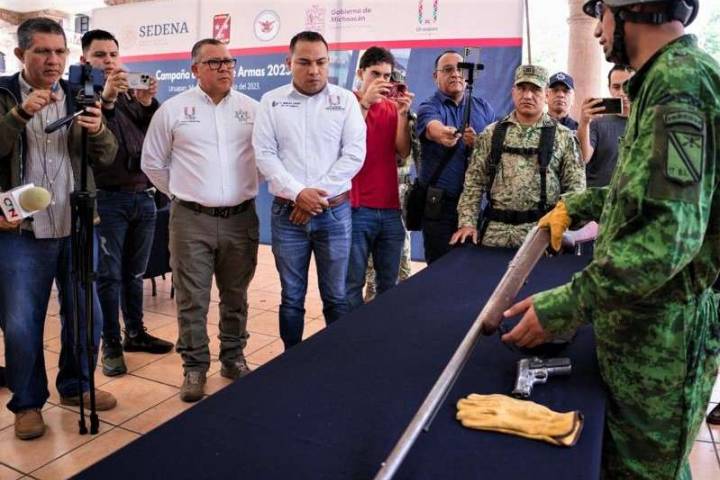 Comenzó la campaña de canje de armas 2023 en Uruapan, que se lleva a cabo del 3 al 10 del presente mes de julio, en la Pérgola Municipal, y con horario de 8:00 a 16:00 horas. Es una actividad que tiene el objetivo de propiciar la paz y armonía; el programa de desarme voluntario está a cargo de la Secretaría de la Defensa Nacional (Sedena).