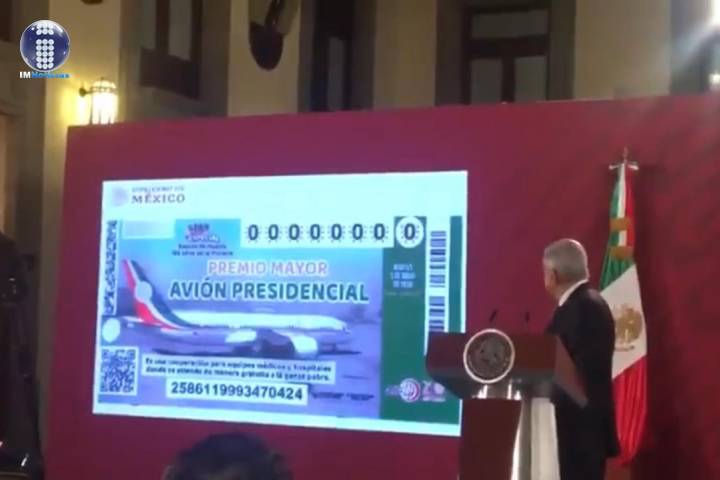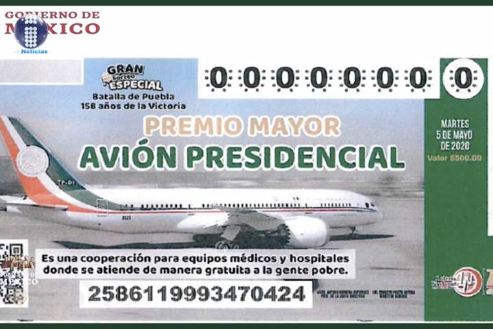NOTICIAS 28/01/20205 de mayo la rifa del avión presidencial ? Andrés Manuel López Obrador presentó este martes en su conferencia mañanera el diseño del ?cachito' para la rifa del avión presidencial.