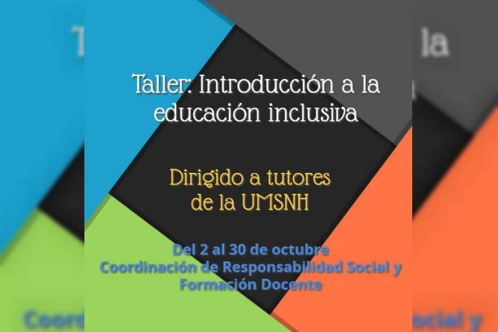 Con la intención de introducir y sensibilizar al docente tutor en el desafÃo del trabajo inclusivo del quehacer cotidiano y su vida académica, la Universidad Michoacana de San Nicolás de Hidalgo, a través de la Coordinación de Responsabilidad Social y Formación Docente invita a los tutores nicolaitas al Taller "Introducción a la Educación Inclusiva".
