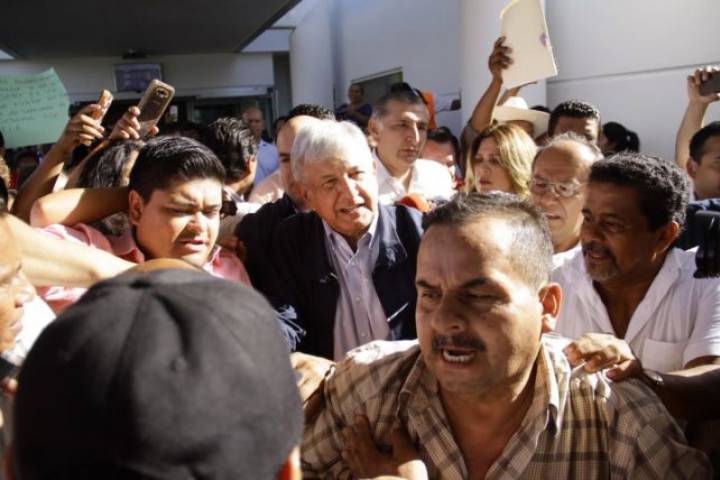 El tabasqueño regresó a su tierra como presidente electo para reunirse con petroleros, pero entre medios de comunicación, personas que querían saludarlo, otras más que le entregaban documentos y le hacían peticiones, lo apachurraron.