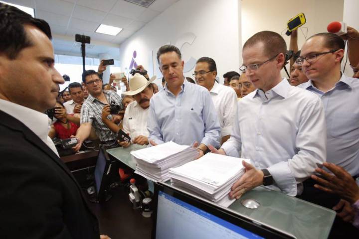 El Partido Acción Nacional presentó ante el Instituto Electoral de Coahuila (IEC), la impugnación de la elección a gobernador en la entidad, luego de que los resultados fueran desfavorables para su abanderado Guillermo Anaya. El presidente nacional del PAN, Ricardo Anaya, junto con el candidato blanquiazul, Guillermo Anaya, acudieron la tarde de este miércoles a las instalaciones del Instituto Electoral local para entregar el recurso jur...